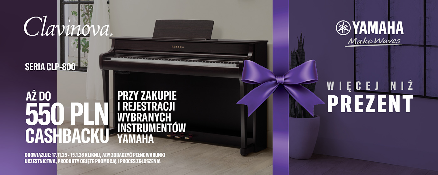 Skorzystaj z promocji Yamaha Cashback! To Twoja szansa na realne oszczędności przy zakupie sprzętu. Oferta jest aktywna od 17 listopada 2025 r. do 15 stycznia 2026 r. Pamiętaj, aby zgłosić swój wniosek Cashback do 30 stycznia 2026 r.